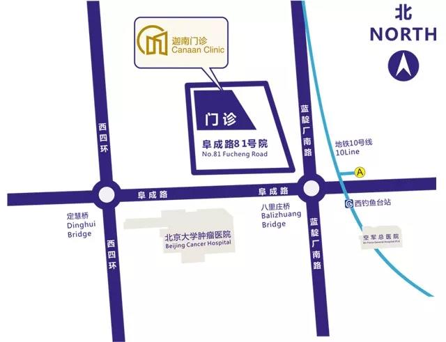 过航天桥沿阜成路向西行驶,经过八里庄桥向西200米进入辅路,迦南门诊在道路北侧(行车方向右侧)