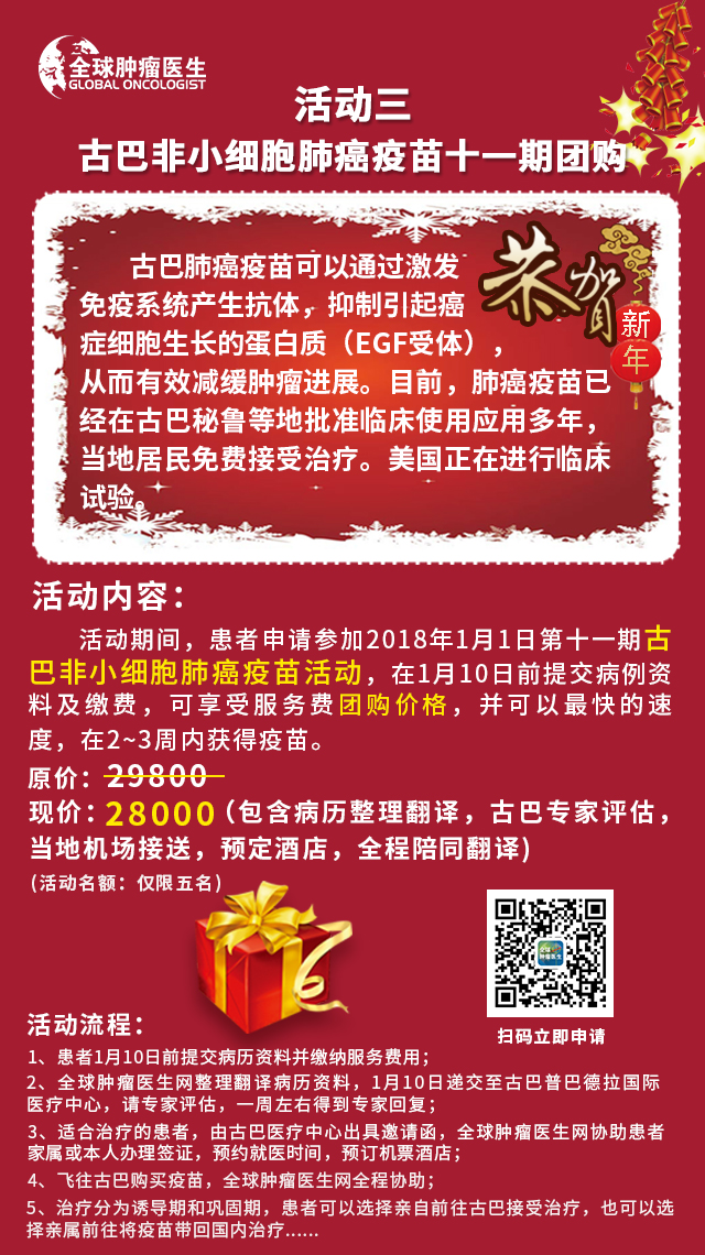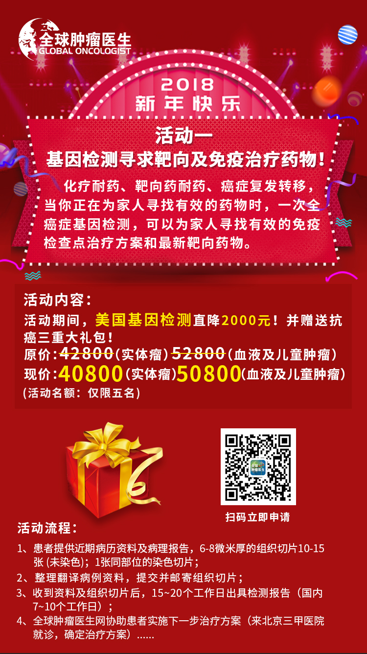 2017年已经结束,无论是刚诊断为癌症的患者,还是正在与癌症抗争的患者,我们都希望您在即将到来的2018年能够大获全胜。在新年来临之际,全球肿瘤医生网特别准备了抗癌大礼包,奉献给所有的癌症患者,愿你们带着新的希望敲响新年的钟声,战胜癌症!