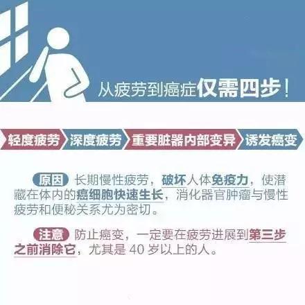 从疲劳到癌症只需要四步:轻度疲劳→深度疲劳→重要脏器内部变异→诱发癌变。说话有气无力、食欲差、不容易入睡……这是身体在提醒你:要休息了!