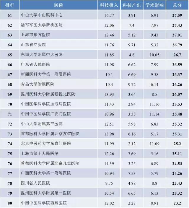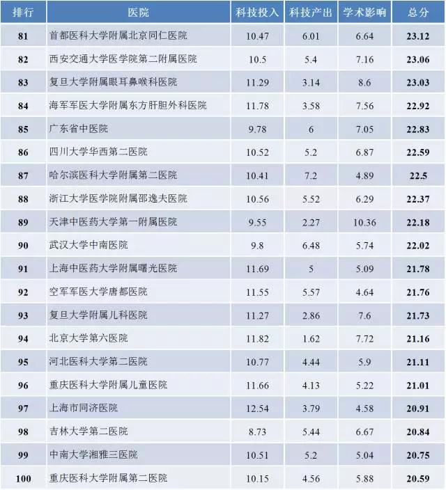 完整信息详见中国医学科学院医学信息研究所网站:http://top100.imicams.ac.cn