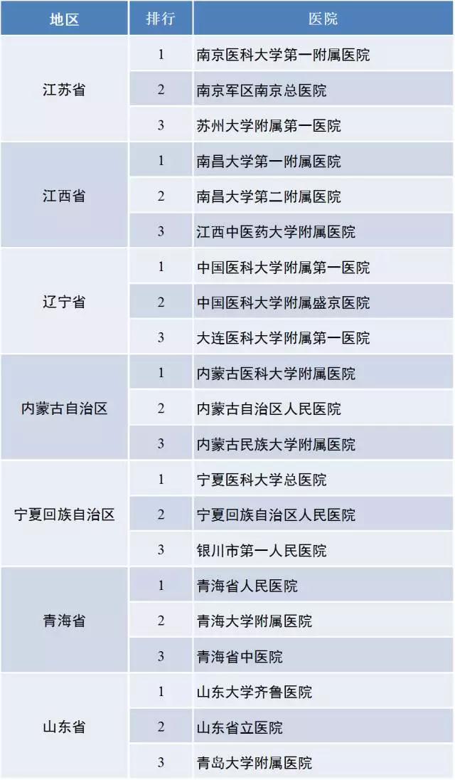 由于西藏自治区仅1家医院(西藏自治区人民医院)在统计名单中,因此,西藏自治区排名未单独列出。