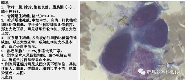 我们在临床上遇到最多的实体瘤骨髓转移发生在年轻胃癌患者,其他有乳腺癌和小细胞肺癌,肺腺癌骨髓转移还是第一次接触到。
