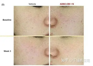 2021年6月,韩国首尔延世大学皮肤生物学研究所Lee Ju Hee团队在《美容皮肤病学杂志》(Journal of Cosmetic Dermatology)上发表了一篇双盲、随机、对照的研究表明:激光后局部应用脂肪间充质干细胞上清液联合烟酰胺对皮肤有抗衰老作用。