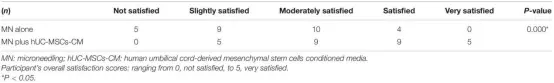 研究人员调研了28名受试者对疗效的总体满意度,在不知情情况下(受试者是在蒙眼状态接受微针注射的),他们更满意经hUC-MSCs-CM注射的那一侧面部皮肤的效果。