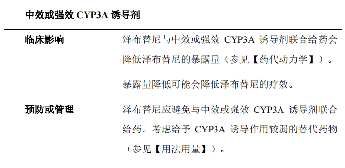 CYP3A 诱导剂对泽布替尼的作用