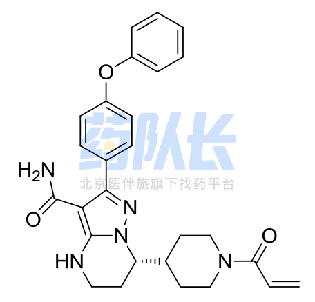 化学名称:(S)-7-[4-(1-丙烯酰基哌啶基)]-2-(4-苯氧基苯基)-4,5,6,7-四氢吡唑 并[1,5-a]嘧啶-3-甲酰胺